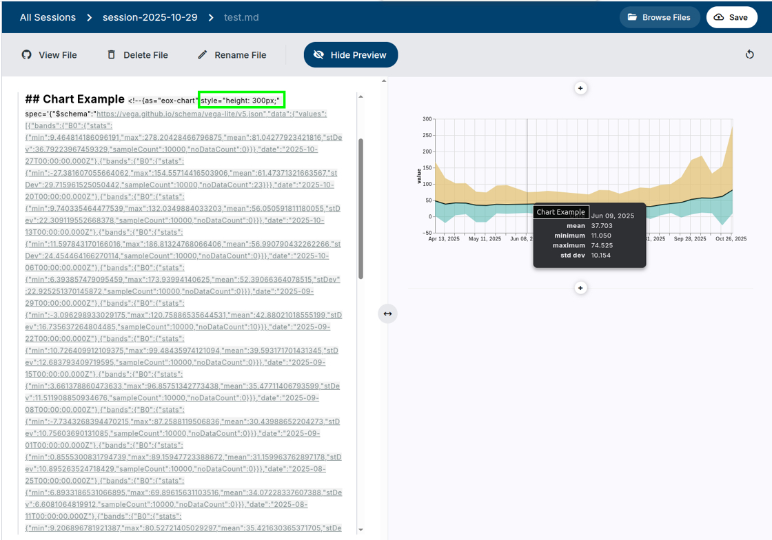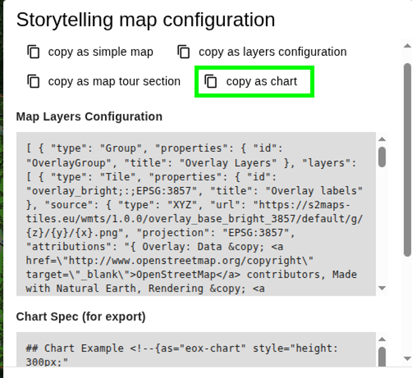 20. For datasets where processing results are visualized as a chart, you can export it as eox-chart block.